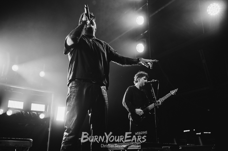 Die Bühnenbeleuchtung fiel während des gesamten Konzerts zurückhaltend minimalistisch aus: Rotes oder blaues Licht, leichter Nebel und passendes Artwork vom neuen Album auf den Bildschirmen an der Rückwand der Bühne. So konnte man sich ungehindert auf die eindringliche Stimme von Rory einlassen. Im Vergleich zu den anderen Acts des Abends besteht der Gesang von DAYSEEKER nämlich zu einem großen Teil aus eher cleanen Vocals.