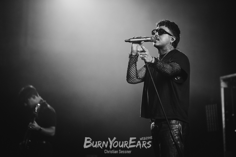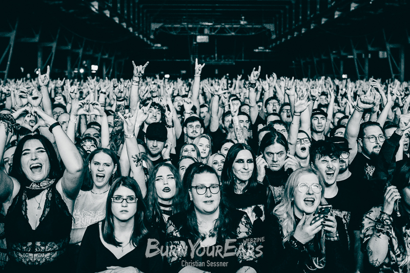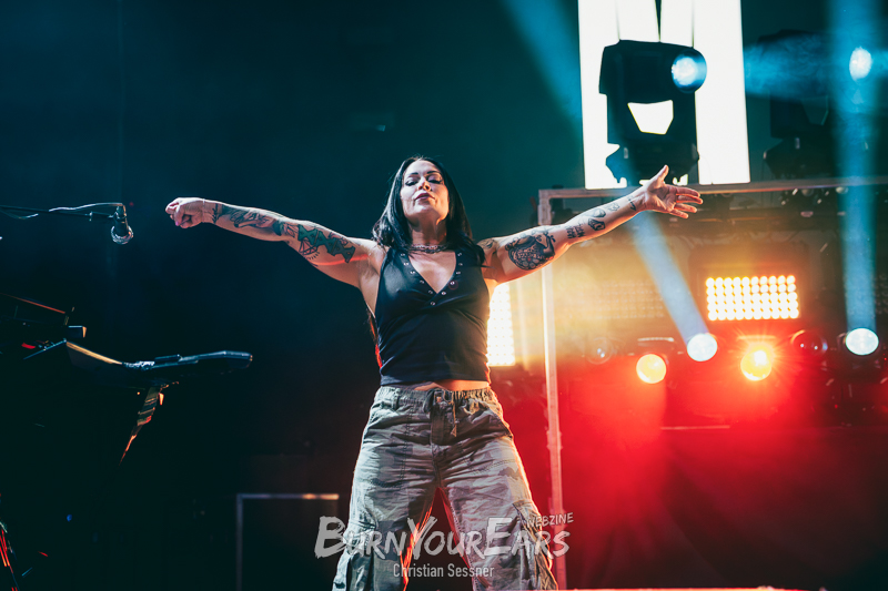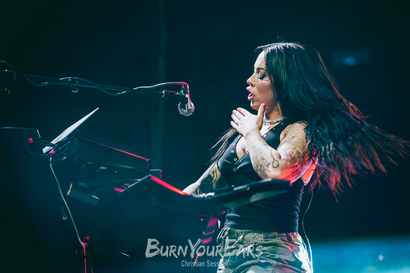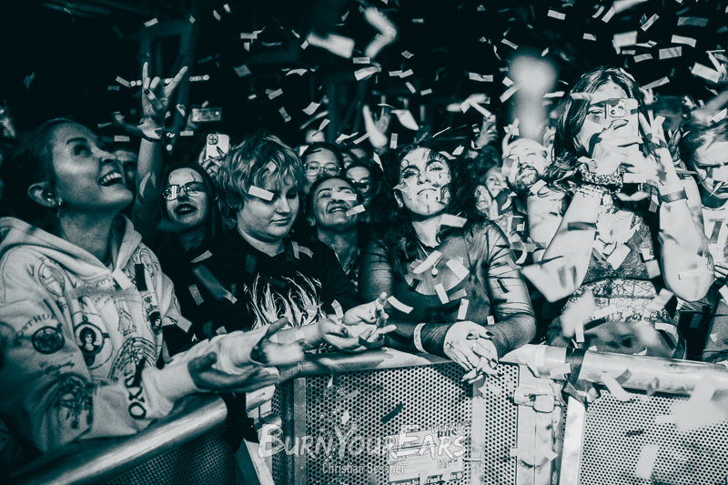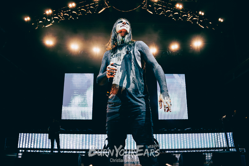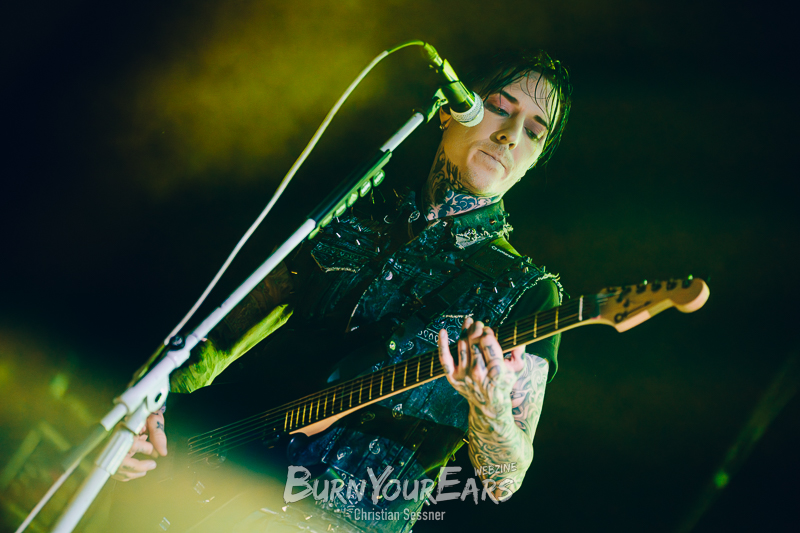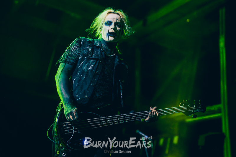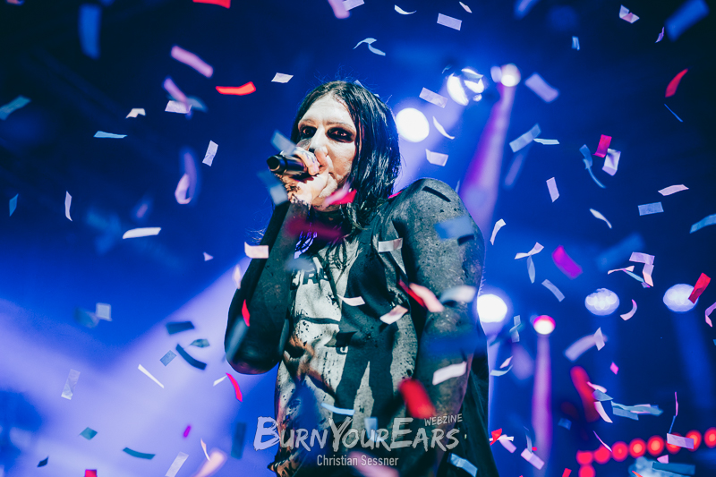 Zum dritten Stück wurden dann die Besucher erstmals in das Geschehen involviert. Passend zu dem eher ruhigen Song „Burial Plot“ erleuchteten sie die komplette Konzerthalle mit einem Lichtermeer aus Feuerzeugen und Smartphone-Lampen. Im Anschluss folgte die nächste Ballade „Crawl Back To My Coffin“, ehe eine der härteren Nummern des Sets „Bloodlust“ gespielt wurde. Hier wurde zum Breakdown sogar ein Moshpit eröffnet.