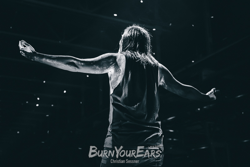 Nach gerade einmal drei Songs wurde also schon alles Mögliche an Special-Effects ausgepackt, was es für mich im Fotograben, aber ebenso für die Zuschauer im Publikum sehr aufregend machte. Doch auch im Anschluss wurde bei dem rund 90-minütigen Konzert regelmäßig für Showeinlagen auf der Bühne gesorgt.