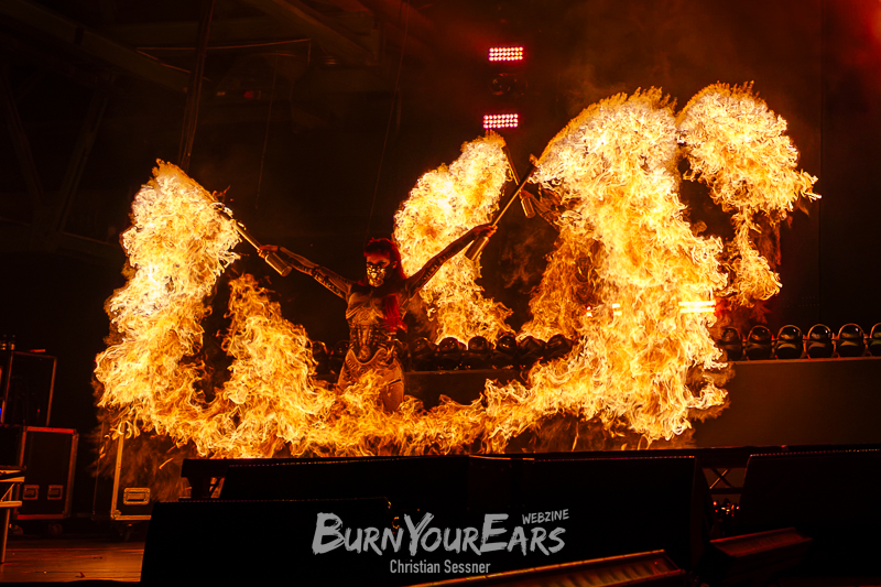 Neben den leuchtenden Flammen-Fontänen standen nun zusätzlich noch die CHERRY BOMBS – eine selbsternannte Girl-Gang, die für die Show- und Tanzeinlagen zuständig ist – mit Fackeln auf der Bühne und boten eine Feuershow, die ihresgleichen sucht.