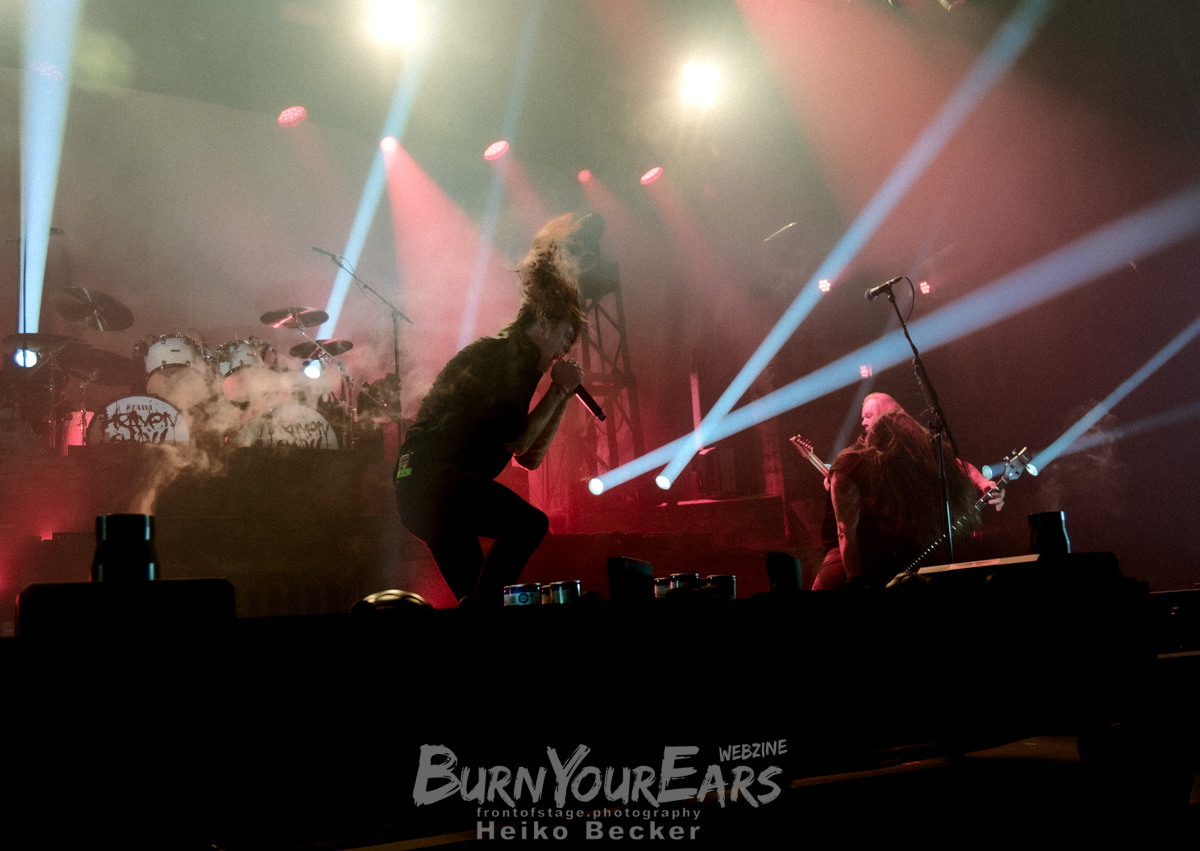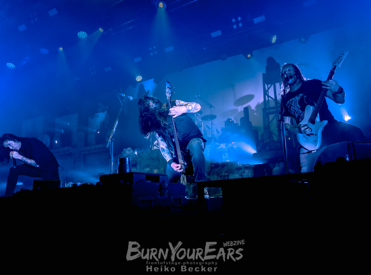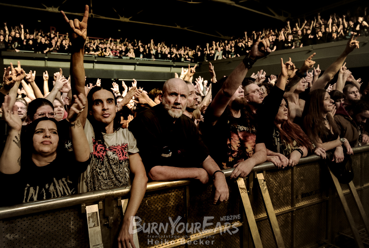Was die Energie im Saal jedoch endgültig auf die Spitze trieb, war die schiere Masse an Bewegung. Schon nach den ersten Riffs öffneten sich Circle Pits, die zeitweise die halbe Hallenfläche einnahmen. Doch die Action blieb nicht nur am Boden: Ein permanenter Strom an Crowdsurfern ergoss sich in Richtung Bühne. Die Ordner im Graben hatten alle Hände voll zu tun, um die Fans sicher in Empfang zu nehmen – ein logistischer Kraftakt, der perfekt zur brachialen Soundkulisse passte.