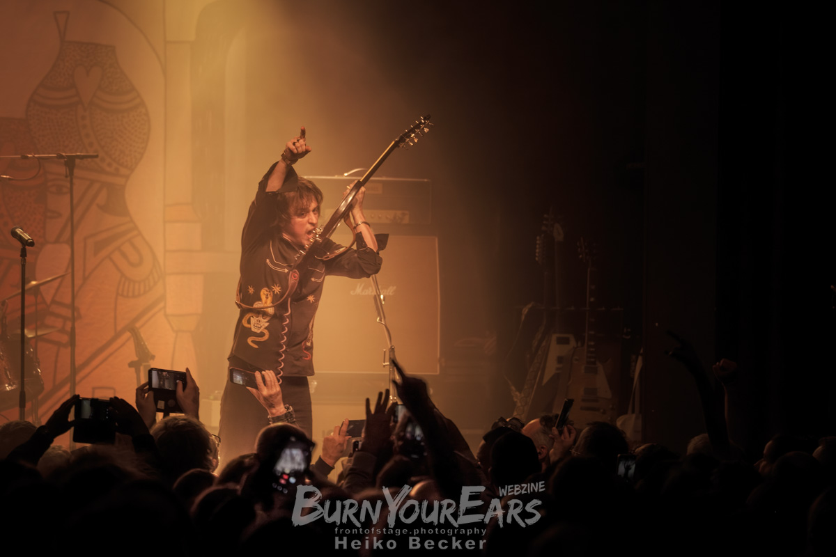 Sänger und Gitarrist Pablo van de Poel tat es seiner Vorrednerin gleich und suchte ebenfalls den direkten Kontakt im Publikum. Zwischendurch bewies er zudem echtes Entertainment-Talent und verwandelte die Show kurzzeitig in eine charmante „Butterfahrt": Mit einer ordentlichen Portion Selbstironie pries er das Band-Merch an und verschenkte Sticker, Streichhölzer und sogar Socken an die Fans in den ersten Reihen.