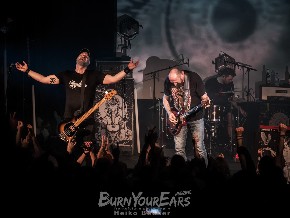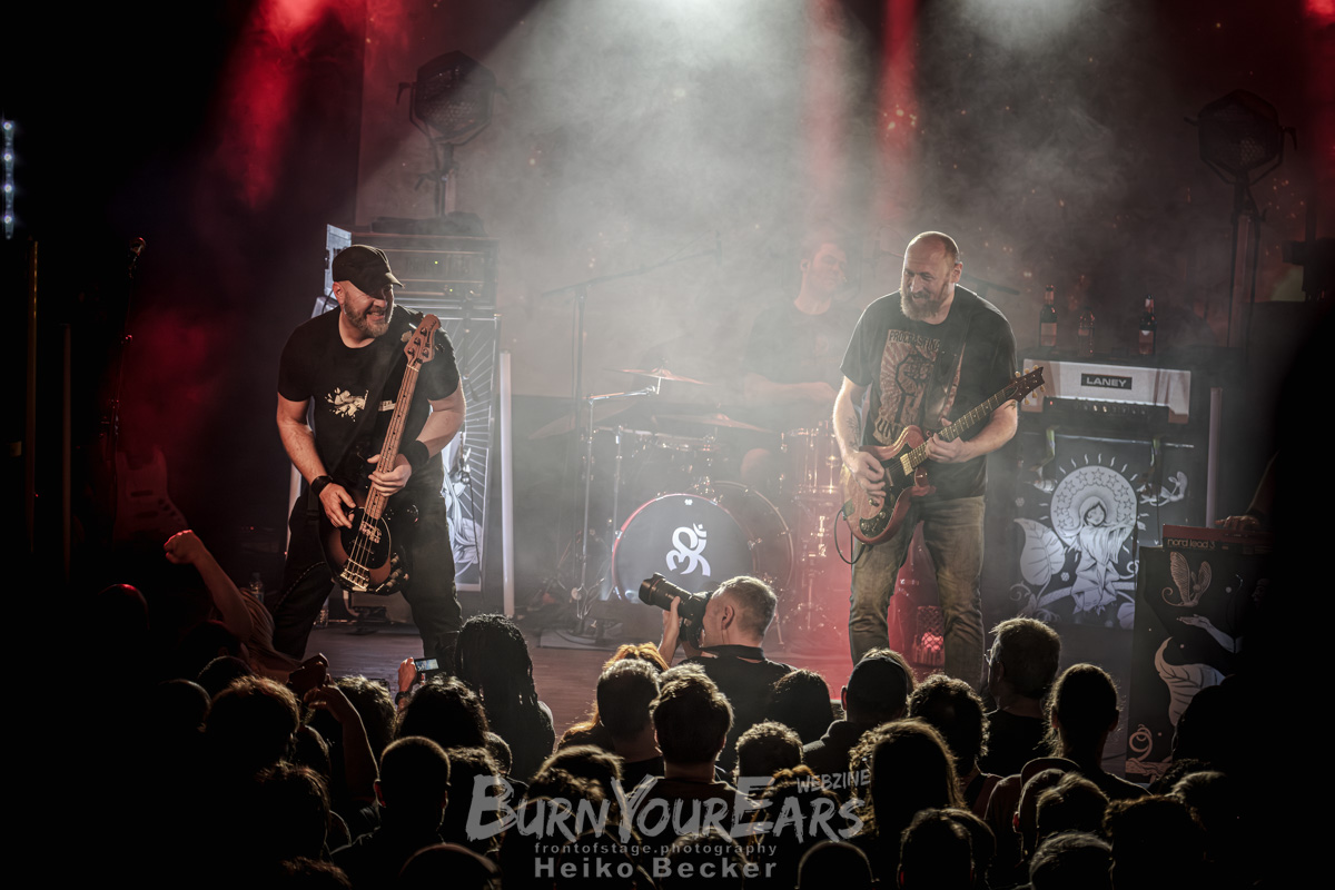 MY SLEEPING KARMA spielten ein sattes 90-Minuten-Programm, das eine perfekte Brücke zwischen alten Hymnen und frischeren Kompositionen schlug. Die Liebe, die der Band vom Berliner Publikum entgegengebracht wurde, war fast physisch greifbar. Die Bandmitglieder zeigten sich sichtlich gerührt und beflügelt von dieser Energie. Dass sich am Ende ihres Sets – untypisch für das oft eher andächtig genießende Genre – sogar einzelne Moshpits im vorderen Teil des Festsaals bildeten, zeugte von der enormen Wucht, die MY SLEEPING KARMA live entfesseln können.